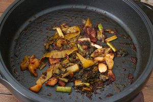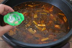 酸菜鱼全料包中的本酸菜包先用食用油热锅后炒香