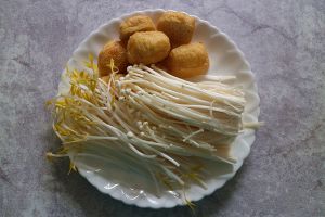 准备一些下火锅食材,我准备了豆腐包,金针菇,豆芽。