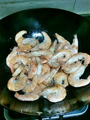 将大虾洗净,剪掉须子,去掉背部虾线。起锅倒油,油热后放入大虾,翻炒至变红