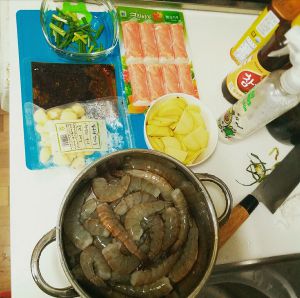 2.下花生油,姜,蒜蓉,爆香放虾进去放些许料酒焖1-2分钟开盖放些许水放进所有调料焖至收汁出锅