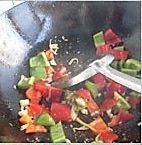 锅内留底油,油热后放入葱姜末爆香,然后放入青红椒片翻炒,放入刚才炒过的腰花。