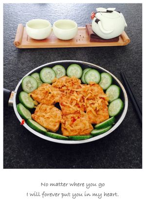 剩下的酿豆腐就用油炸熟了,以后再小用锅慢慢煮。但这种吃法口感“太老”,远不极前面的鲜美。大蒜辣椒酱的做法很简单:把大蒜子或蒜头切碎装在碗里,上面撒上辣椒粉,然后浇上烧热的油,最后倒入生抽和香油拌均即可
