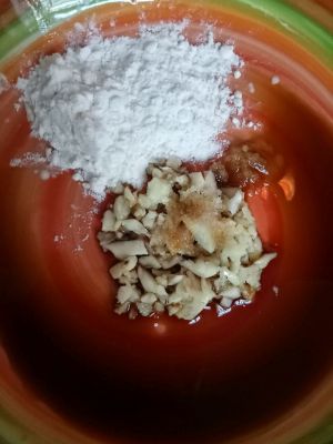 准备好调料,大蒜剁碎,放点生抽,盐,加点水~