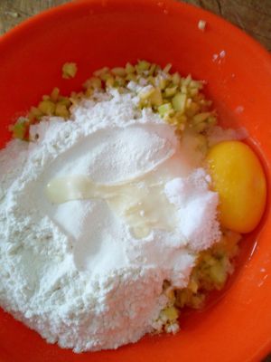 拌入和南瓜等量的糯米粉,揉成面团,不喜欢太糯的可以加些面粉。