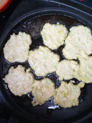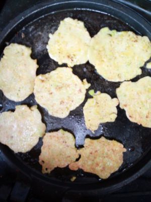 将面糊摊成小薄饼(火一定不能大,不然饼还没熟呢就糊了)