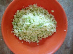 切一些南瓜(我用的南瓜比较嫩,也可以用黄色的)