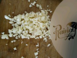 搅拌均匀后加入适量面粉,大蒜末,鸡蛋一颗继续搅拌均匀