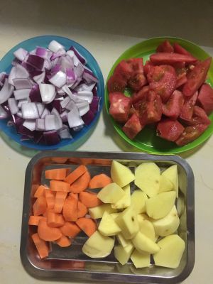 番茄去皮切块,其它切块