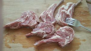 用叉子在羊排上正反面扎出很多小孔,腌制的时候比较入味