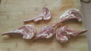 羊排解冻后泡水5分钟,捞起抓干血水。用盐和黑胡椒腌10分钟,热锅下油,蒜末,双面各煎2分钟