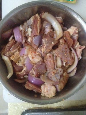 准备好腌料 新鲜羊排 腌制3--4小时 按图中步骤操作下