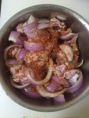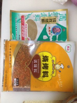 然后就是放调料,烧烤料和孜然粉(必放)随便神马牌子都OK,超市 都可以买得到,放多一点儿会比较入味儿