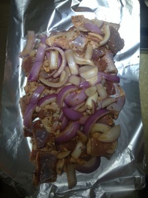 取出羊排,把它匀放在锡箔纸中像包饺子一样包好,不要漏气