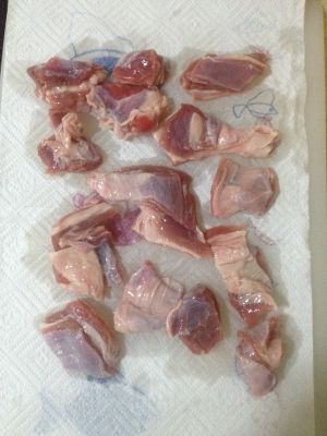接下来放料酒(适量),只要抓匀后每块羊排都能抹到而且盆里还不会有剩余就是最完美的^_^