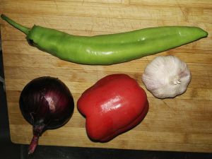 蒸的时间把蒜,姜,甜椒,辣椒,洋葱切末。
