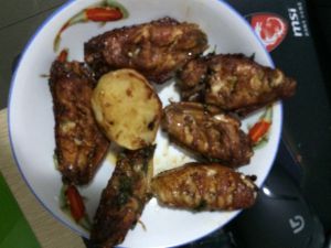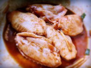 将鸡翅蘸裹酱料,浸泡10分钟。