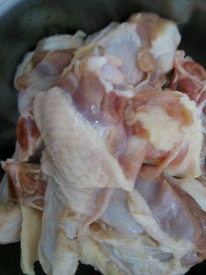 1 先将中翅温水解冻,完全解冻后,拿几根牙签,一直扎扎扎,为了方便腌料入味。放几片姜片去腥。然后带上手套给中翅做马杀鸡(按摩)