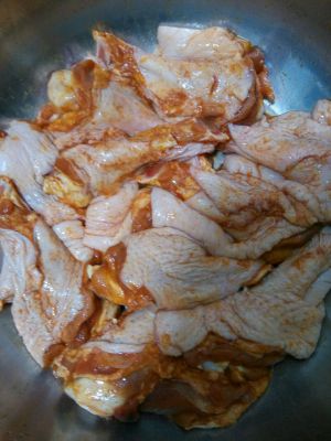 将奥尔良烤肉料和水按照烤肉料:水:肉类=7:7:100g的比例混合。