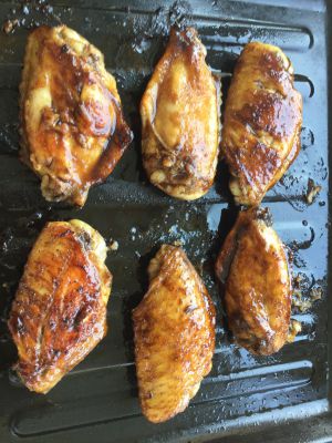 将腌制好的鸡翅放在铺了锡箔纸的烤盘上,将剩余的烤肉料刷在鸡翅上,最后再刷一层蜂蜜,180度20分钟。然后翻面,再刷一层蜂蜜,再烤十五分钟就起锅啦。