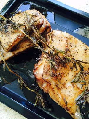 将煎好的羊排背部朝上放入烤盘,同时将锅中多余的香料和油全部倒入烤盘,烤箱预热200度,中层烤20分钟。