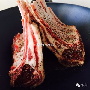 羊排两面撒上盐、黑胡椒静置10分钟。