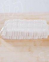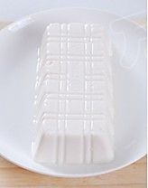 内酯豆腐用刀划开上面,倒扣在盘中,放置一会会出很多水,倒掉水。