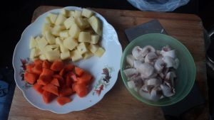 口蘑、土豆、胡萝卜切成丁