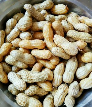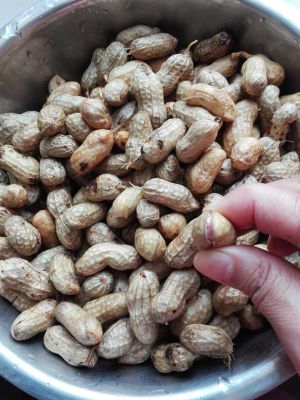 洗干净后,用手将花生皮捏开个小口,以便煮时入味。