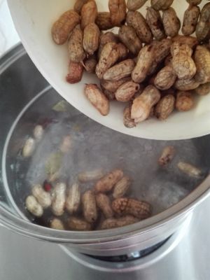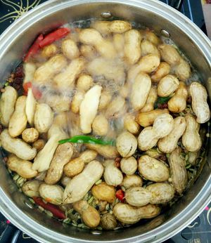 放入适量的盐(盐的量要比平时炒菜的用量多些)如拿不准,煮开后,用勺梢稍尝一尝,汤汁略咸,这样煮熟的花生咸淡刚好。煮好后,先不要急着捞出,浸泡2个小时左右,让花生更好的入味。