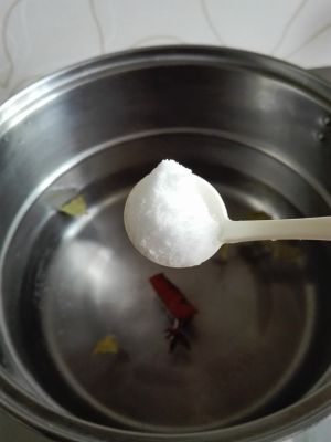 花椒,大料和盐放进去,盐水花生嘛,盐可不能省了