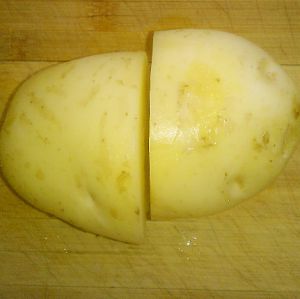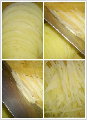 切薄片,越薄越好,这样切出的土豆丝才会细