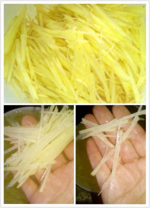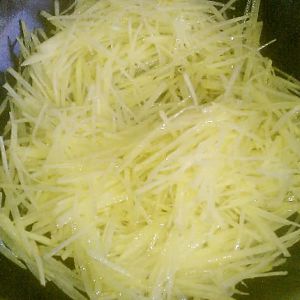 土豆切丝!越细越好,也可以像我一样用切丝器切!