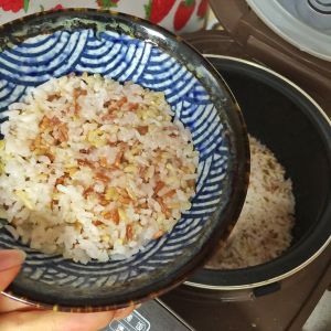 米饭铺碗底,将各种菜如图摆盘。可以切一个熟鸡蛋加上,好看又营养。最后撒上白芝麻上色加香。