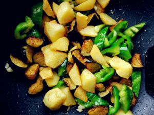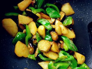 炸的土豆和茄子发黄,辣椒也过一下油。