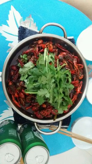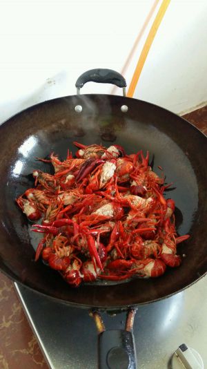 炒料过程,将油烧熟,放花椒,辣椒,油温不易太高,后再放郫县豆瓣酱,火锅料翻炒!随后放小龙虾炒,加高汤烹饪20分钟以上!最后加大葱,芹菜…调味跟自己的口味添加!最好放点鸡精和白糖就可以了!