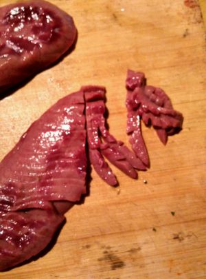 先将腰子切成坡刀.切到3/4.不要切到底。