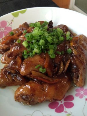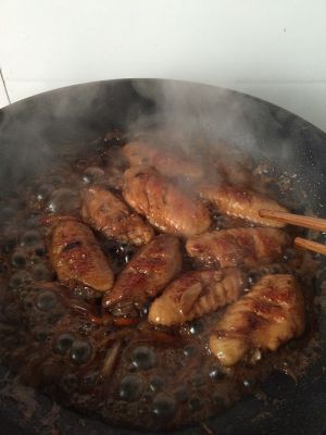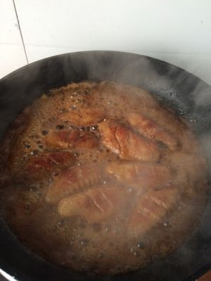 没想到我没拍照……鸡翅洗净黄酒盐生抽腌下,一点点就好,一下下就好。再油爆了大蒜和八角就把鸡翅拿来煎到两面都小焦焦