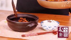 ▲然后盛到这种土锅里,加一点点水,盖上盖子,小火焖上5分钟就行了。