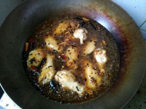 加入可乐或啤酒,没过鸡翅,大火煮沸,再小火慢炖,至收汁,便可。喜欢辣的可以放点,口味自己定。