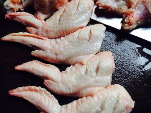 1.将鸡翅洗干净,每个鸡翅两面总刀划两道口子,用酱油、生抽、料酒、生姜、葱腌渍15分钟,记得要使鸡翅均匀腌渍。