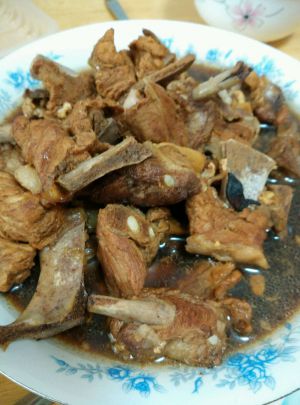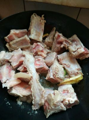 起油锅,放个小料炒香,加入排骨翻炒五分钟,加入小25毫升水“开水”,文火