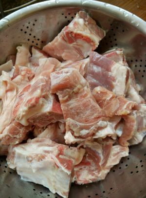 新鲜腔骨泡水十分钟,去掉血水的同时也帮助去腥。然后焯水,去掉血沫。