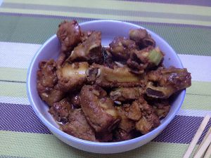 排骨炖了30分钟,熟了即可。起锅,葱花爆香,倒入排骨,放入红烧酱油,白糖,盐,收汁即可。