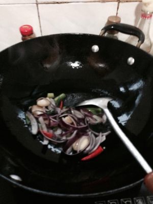 开火热锅倒油,待油烧红之后将辅料依次倒入翻炒片刻
