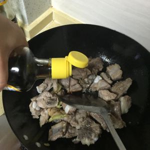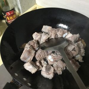 配料煸香后加入排骨下锅煸炒