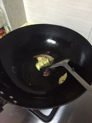 锅烧热后下花椒炸香捞出不要,再放入葱八角香叶煸炒