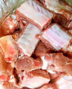 将整锅排骨和水倒入高压锅中,加入食盐,八角,桂皮,调制肉/鸡档