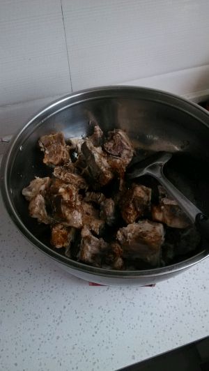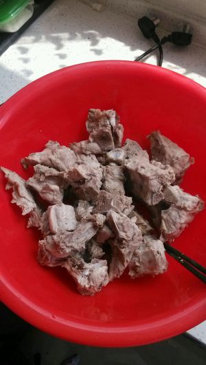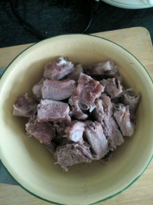将排骨放入冷水中烧开逼出血水(排骨一定要是凉水下锅,这样才能彻底把血水煮出来)水烧开后将排骨捞出来备用