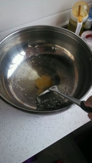 锅里倒油,油开放糖,用勺按碎至糖变色。宁浅勿深,熬深了糖就糊了