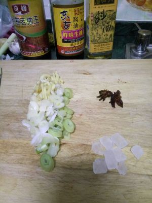 另起锅,倒入适量油把葱段,姜片炒出香味。